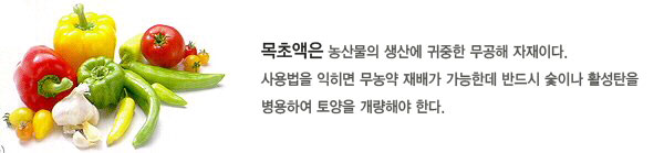 ¸ñÃʾ×Àº ¾ËÄ®¸®¼º ³ó¾à°ú´Â Èñ¼®µÇÁö ¾ÊÀ¸¸ç ºÎÀÛ¿ëÀÌ ÀÖÀ¸¹Ç·Î ¹Ì½É½Àº ºÎºÐÀº óÀ½¿¡ º¸±Ý¸¸ ½ÃÇèÇØº¸°í ½ÃµµÇØ¾ß ÇÑ´Ù. ¸ñÃʾ×ÀÇ ³óµµ°¡ ¾àÇϸé (300¹è ÀÌ»ó)»óÀå ÃËÁø, °Çϸé(50¹è ÀÌÇÏ)Á¦ÃÊÁ¦°¡ µÈ´Ù.
